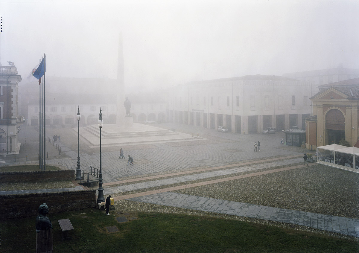 Luca Nostri, Piazza Baracca, looking east from the hanging garden, Lugo, 2020